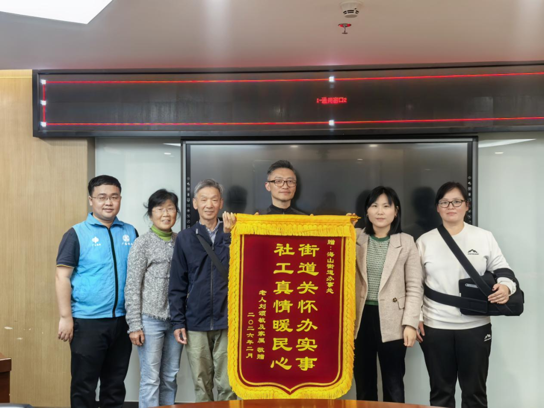 面对居民的求助,社工也积极联动社会资源帮助其解决实际困难,包括为生活困难的困境儿童送上御寒物资,为独居老人提供政策咨询以及救助街面流浪的困难老人等,兜牢民生底线,做到不漏一人、落到实处。社工贴心细致的服务也得到了服务对象的广泛认可,2月10日下午,辖区独居老人刘阿姨的家属代表向街道送上一面感谢锦旗,对街道社工的温情关怀与细致服务表达由衷感谢。